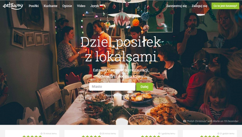 Najlepsze pomysły rodzą się z głodu. W końcu wygłodniały organizm to organizm gotowy do ataku. Martę Bradshaw dziki głód dopadł w Kazimierzu nad Wisłą, gdzie spędzała weekend z córką i mężem. To właśnie wtedy, po zaliczeniu „typowej turystycznej pułapki” w postaci przepłaconego i niedobrego posiłku, wymarzyła sobie Eataway. Miejsce w internecie, które pozwala „domowym kucharzom” spotkać się z łasuchami. U kucharzy w domu. Eataway działa w myśl modnej ostatnio „sharing economy”, która zakłada zarabianie przez dzielenie się. I nie chodzi tu tylko o dzielenie się jedzeniem, ale też rozmową i czasem. Na stronie znajdziemy zaproszenia od kucharzy i opisy menu. Cena czterodaniowej kolacji to około 80 złotych. Alkohol i dobre towarzystwo we własnym zakresie. Platforma wystartowała wiosną w Krakowie, a od dwóch miesięcy działa również w Warszawie. W roli kucharza może wystąpić tam każdy, kto ma smykałkę i przejdzie test smaku Marty. Eataway to świetny pomysł dla tych, którzy kochają gotować, a nie mają kogo jedzeniem karmić. To też fajna okazja do odwiedzenia cudzego domu, przyjrzenia się cudzym zwyczajom i poznania obcych, którzy jedzenie kochają jak seks. Bez powikłań i przypadkowości.