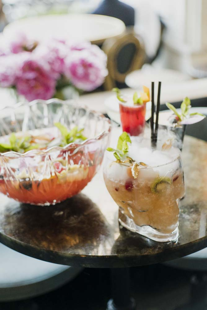 Poncz Orient: Jego podstawowym składnikiem jest wódka infuzowana pieczonymi bananami w miodzie. Sok bananowy, herbata rooibos, prosecco i odrobina grenadyny. No i oczywiście masa owoców – słodkich i cytrusowych.