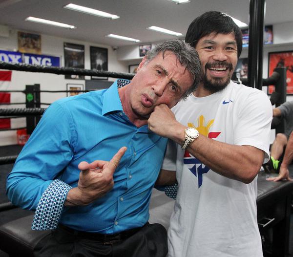 Najważniejsze walka bokserska ostatnich lat jest już za rogiem i media nie chcą nawet na chwilą zaprzestać podgrzewania atmosfery. Tym razem firma promotorska walkę postanowiła zamieścić zdjęcie Manny’ego Pacquiao z Sylvestrem Stallonem i ponformować, że Rocky oficjalnie będzie wspierał Manny’ego w walce o pas przeciwko Floydowi Mayweatherowi.