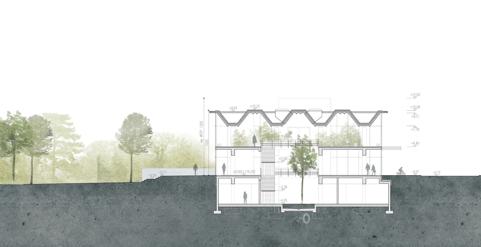 Ujawniono już układ budynku – parter ma być otwartą przestrzenią z elewacją skierowaną na park i z wypełnioną roślinami kawiarnią. Piętro to natomiast miejsce wyciszenia i spotkań towarzyskich oraz zajęć, takich jak kurs tańca i joga. Sercem Emilii ma być trzykondygnacyjne atrium z wysokimi drzewami, pełniące funkcję foyer. Zaplanowano także audytorium.