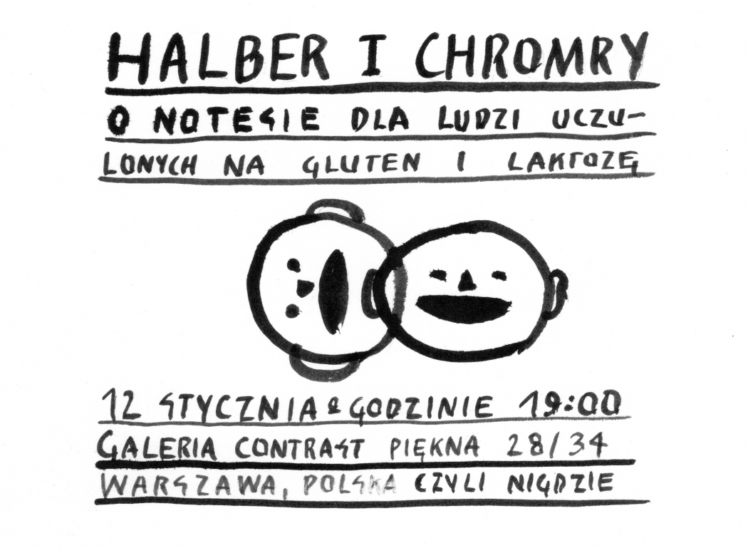 Już 12 stycznia w galerii Contrast odbędzie się spotkanie dotyczące “Notesu dla Ludzi uczulonych na gluten i laktozę”. Z jego autorem, Bolesławem Chromrym, porozmawia nasza stała felietonistka, Małgorzata Halber (TU przeczytacie jej ostatni tekst).