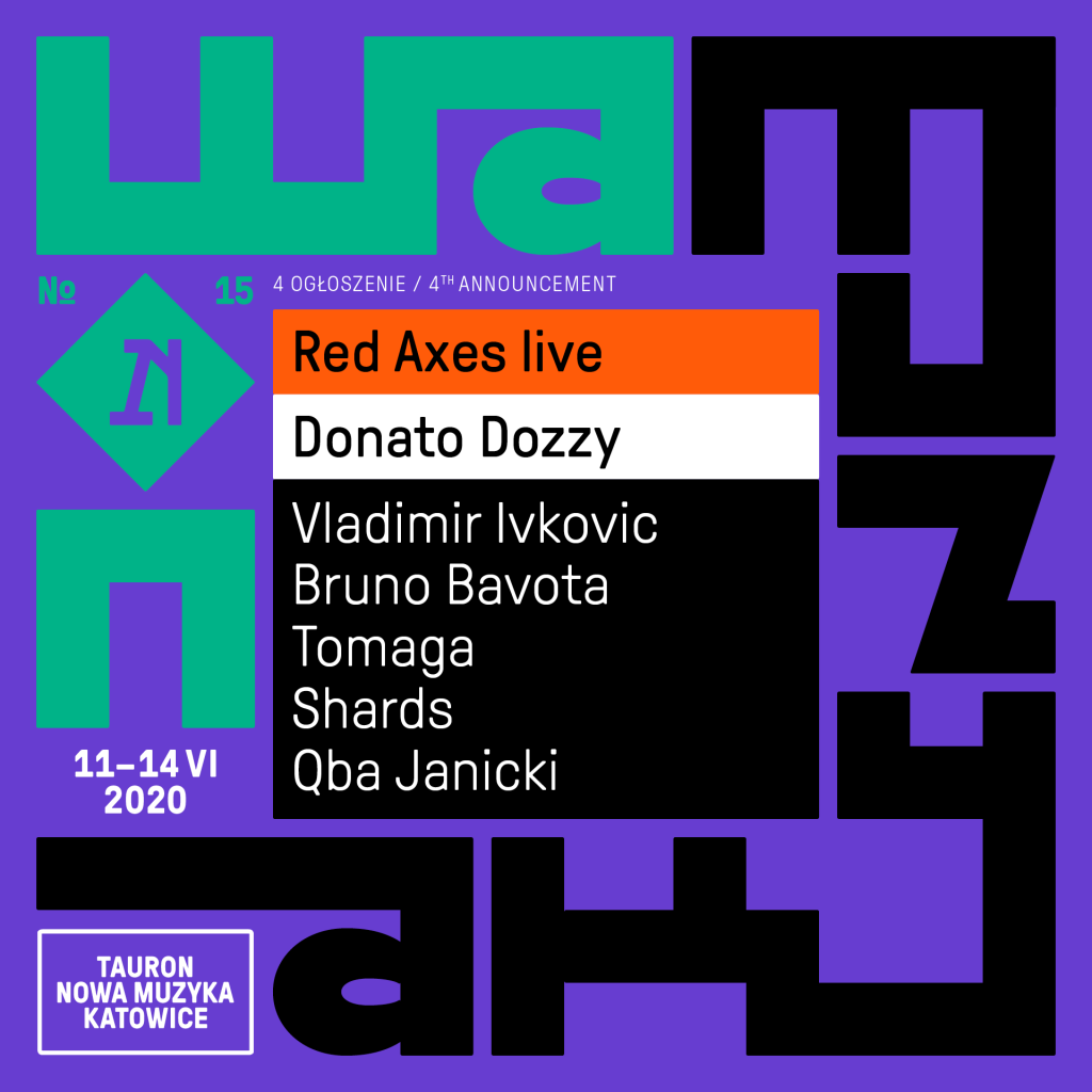 Między 11 a 14 czerwca wystąpią m.in. ulubieńcy festiwalowiczów, czyli izraelski zespół Red Axes, gwiazda techno Donato Dozzy i nieustannie zaskakujący dj Vladimir Ivkovic. Na Scenie Kameralnej NOSPR usłyszymy improwizujący duet Tomaga, włoskiego multiinstrumentalistę Bruno Bavota, a także dwunastoosobową grupę wokalną Shards i ekscentrycznego perkusistę Qbę Janickiego. Tym samym dotychczas ogłoszony skład 15. edycji powiększa się do dwudziestu artystów, a to nadal nie koniec!