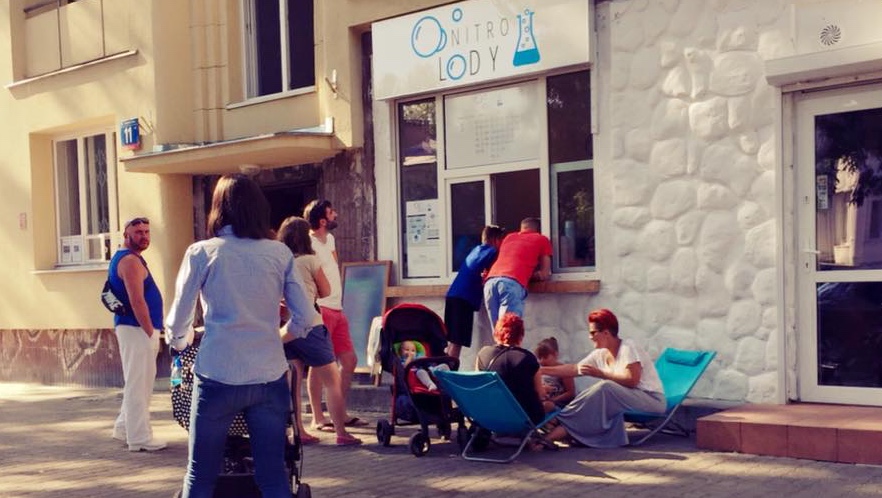 Menu, które przypomina tablicę Mendelejewa, mgliste opary unoszące się nad srebrnymi mieszadłami, ciekły azot w termosie i możliwość skomponowania mikstury według własnego widzimisię. Trudno się dziwić, że w kolejce do niedawno otwartego okienka z lodami molekularnymi stać trzeba czasem nawet 40 minut. Każdy chce zajrzeć do kuchni pełnej niespodzianek. Żeby ominąć korki, wybrałam się do Nitro w samo południe. Dzięki temu mogłam w spokoju obserwować alchemiczne zabiegi. No dobra, przesadzam. Ale nie ma się co oszukiwać – to jak powstają tu lody, jest clou całej zabawy. A ta polega na tym, że wybieramy smak lodów (w ofercie jest 17 smaków, zazwyczaj danego dnia sześć-siedem, w tym obok klasyków typu śmietankowe są np. popkornowe albo płatkowoowsiane) oraz jeden z 35 dodatków (owoce, batoniki, ciasteczka i ciasta – np. szarlotka albo sernik). W solidnym mikserze ląduje płynna lodowa masa oraz wybrane dodatki i – tadam, tadam – wszystko zalewane jest płynnym azotem z termosu. Mikser miesza, a wokół unoszą się opary. Wygląda to bardzo efektownie.