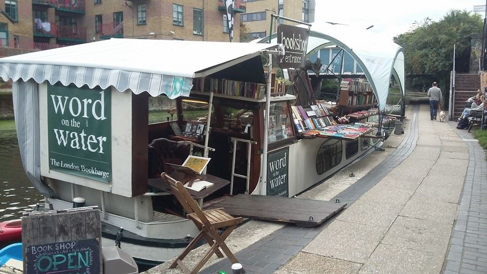 World on Water to barka zaaranżowna na księganie. Nie ma tu dużo miejsca, ale wszystko jest tak sprytnie urządzone, że spokojnie można przepaść tu na kilka godzin. Barka krąży po kanałach Londynu polując na czytelników. Z moich obserwacji wynika, że jej właściciel również na łódce mieszka, ale nie mam pewności. Na pewno jednak mieszka tam ponad setka książek i para kociaków. O wyporność łódki nie pytajcie. Jakimś cudem na dno nie idzie.