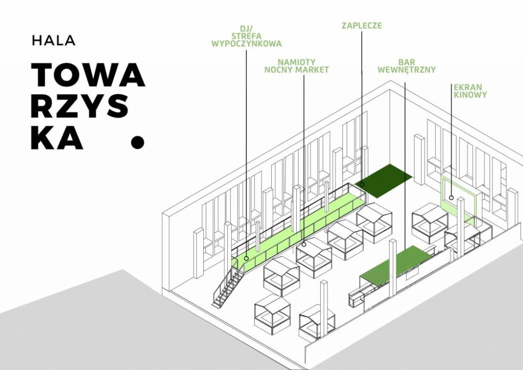 Już w pod koniec kwietnia opuszczona część hali PKP w Poznaniu znajdująca się przy ulicy Kolejowej 28 zmieni się w Halę Towarzyską – miejsce otwarte w nocy i w ciągu dnia, które będzie miało do zaoferowania: seanse kinowe, imprezy, koncerty, warsztaty kulinarne, ekobazar, punkty gastronomiczne i targ odbywający się nocą.