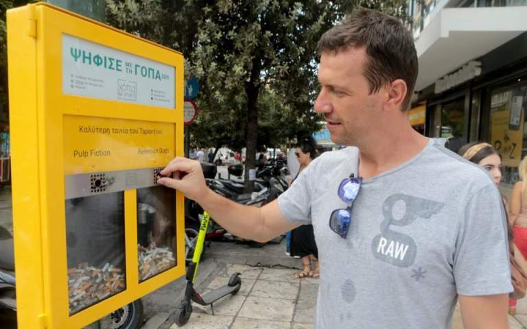 W Atenach ruszył właśnie pilotażowy projekt mający na celu zachęcić palaczy do korzystania z publicznych popielniczek. Petowanie do popielniczek powinno być standardem, ale ekipa Gopa Project postanowiła zgrywalizować cały proces i zaprosić palaczy do zabawy w głosowanie. Każda z wystawionych na ulicy greckiej stolicy popielniczek zawiera „ankietę”. Ankieta to może za wiele powiedziane, ale pomysł „głosowania” znacie pewnie z kontuarów barów i pubów.
