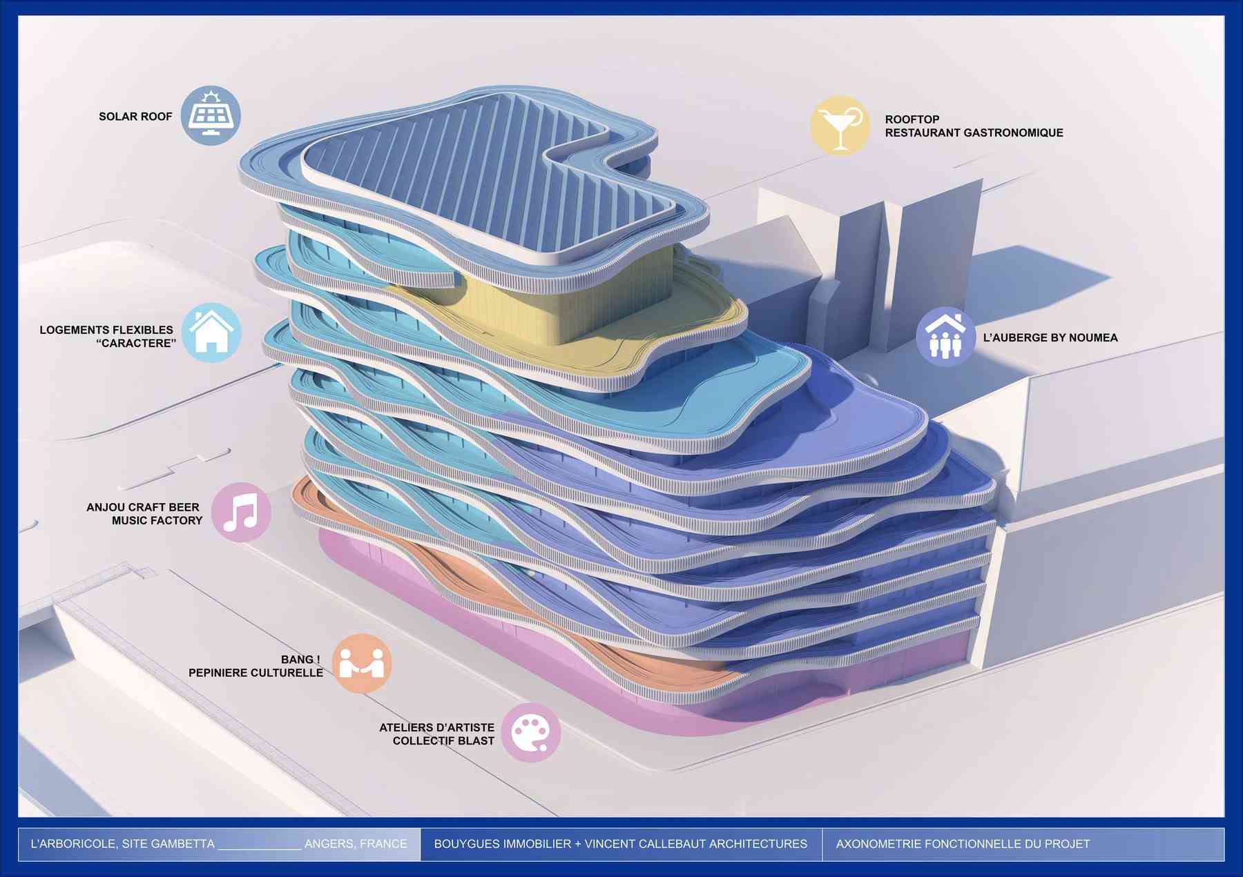 Słynący z zamiłowania do ekologii belgijski architekt Vincent Callebaut proponuje idealne rozwiązanie dla ludzi chcących żyć blisko natury, nie rezygnując przy tym z miejskich udogodnień. Jego projekt wygrał właśnie w publicznym głosowaniu na rewitalizację miasta Angers. “Arboricole” (z fr. “żyjący w drzewach”) to 50-apartamentowy budynek, w którym jest też miejsce na biura, bar, salę koncertową, browar i przestrzeń wystawową dla artystów.