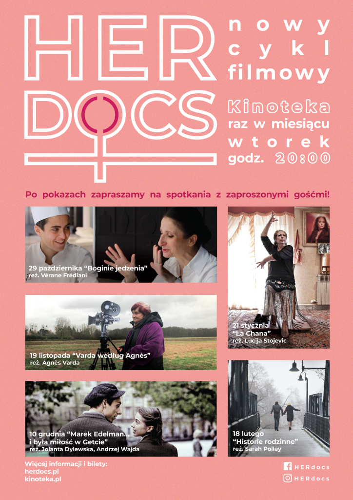 Pierwsza seria cyklu HER Docs obejmie pięć comiesięcznych pokazów pełnometrażowych filmów dokumentalnych, które będą odbywać się w warszawskiej Kinotece od 29 października, we wtorki o godz. 20:00. Po każdym filmie z widzami spotkają się zaproszeni goście.