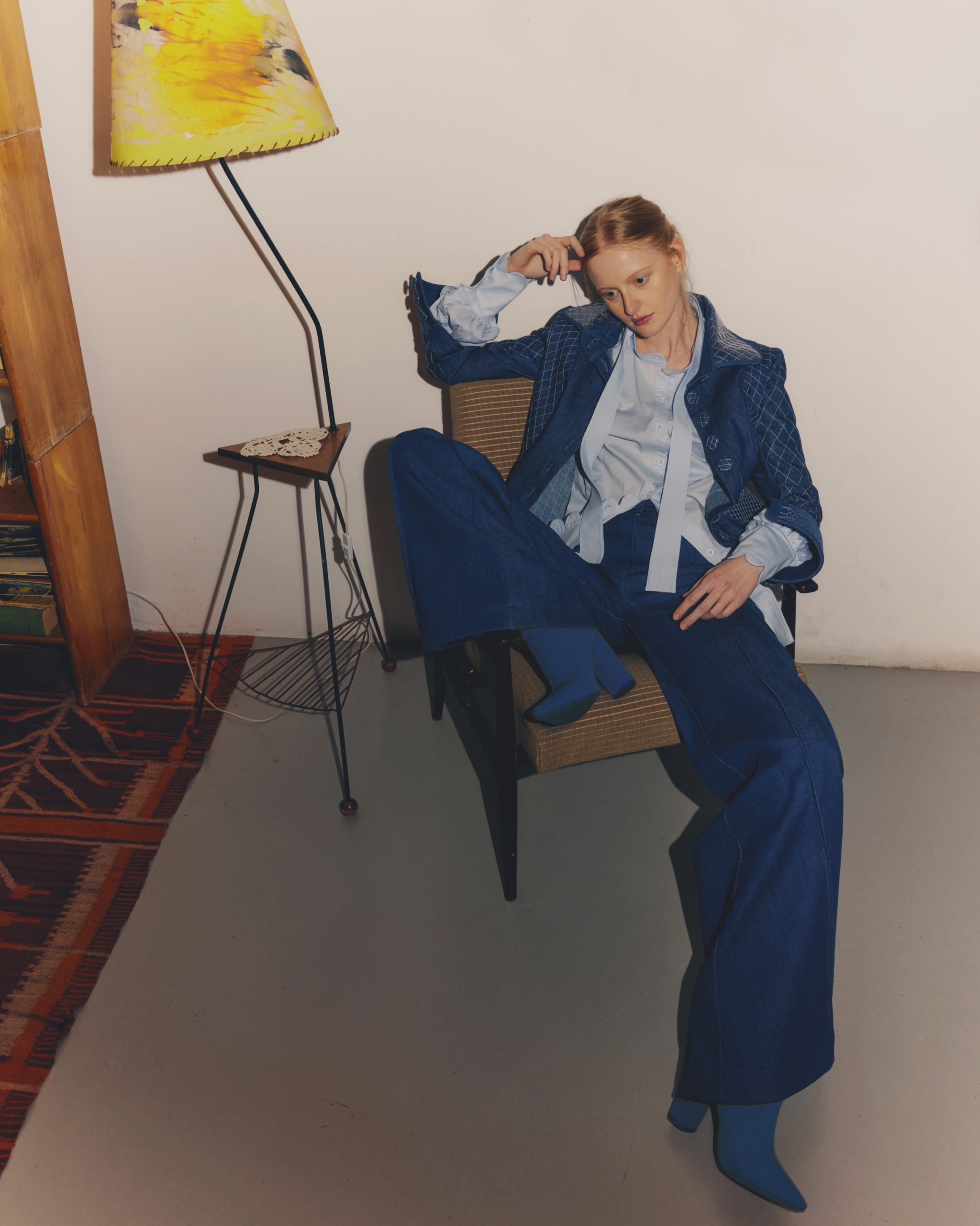W najnowszej kolekcji możemy dostrzec także inspiracje czarnych charakterów. Dyktator jawi się w taliowanym żakiecie z ostrymi klapami i ołówkową spódnicą. Uszyte zostały z aksamitu prześmiewczo zadrukowanego w wirujące baretki z dziesiątek odznaczeń generała Wojciecha Jaruzelskiego. Na zdjęciach w kampanii Dyktator zapowiada stan wojenny, „operację pokojową”, a może mówi o prawach kobiet? Epilogiem dla kolekcji jest sylwetka – „Płaszcz Wyborczy” uszyty z jeansów z recyklingu, z setkami haftowanych kieszeni, szlufek i pęknięć, w które na filmie autorstwa Marty Kaczmarek wpadają karty z pytaniami o przyszłość Polski.