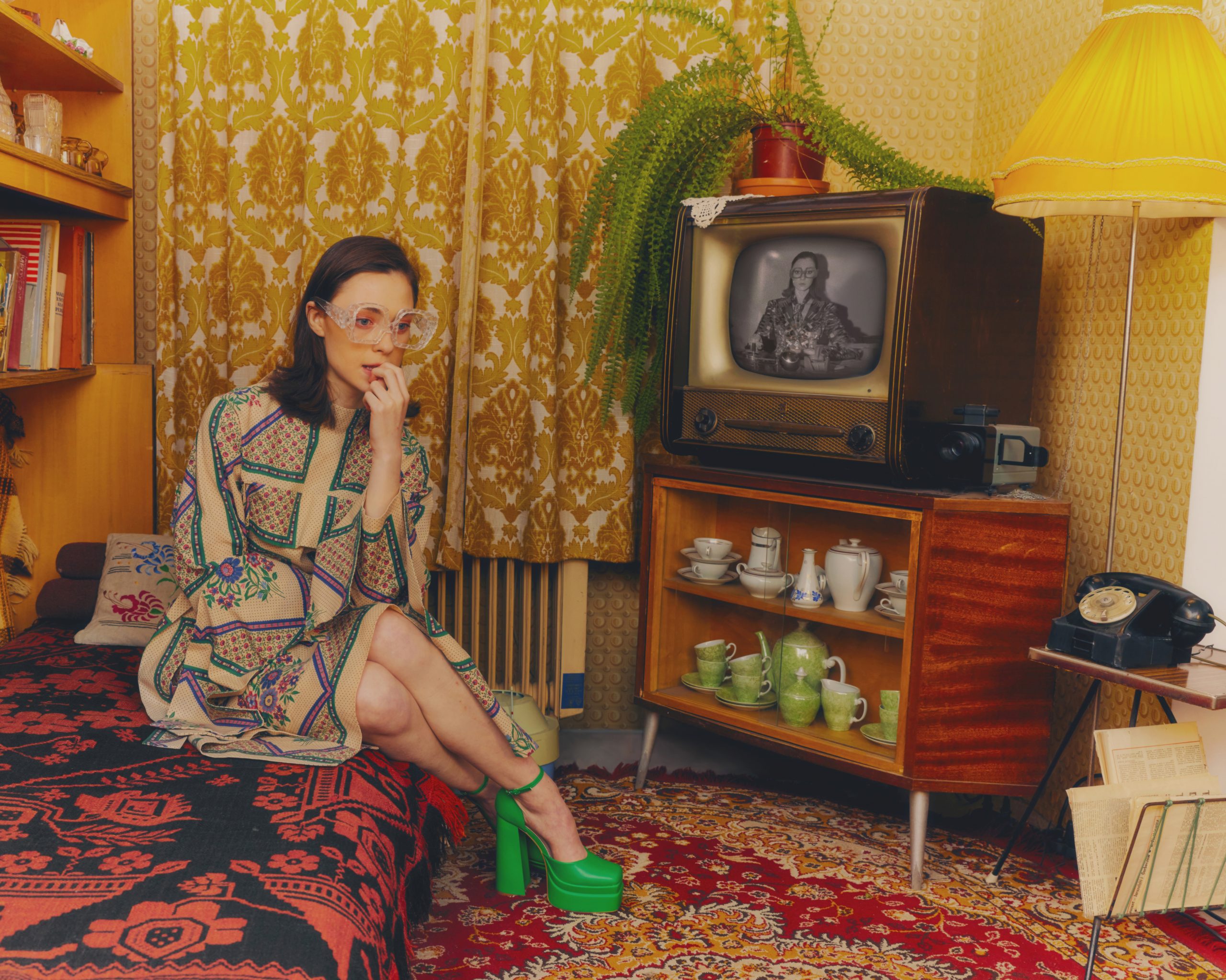 W opowieściach o „zwykłym życiu” znajdziemy także sylwetki z recyklingu. Możemy zauważyć: narzuty kanapowe, kurtkę z kołdry, sylwetkę na działkę, ręcznie robiony na szydełku kombinezon, aksamitną marynarkę w print drewnianych intarsji z motywem jeleni na rykowisku. Kolory dominujące nawiązują do towarów deficytowych: cytryn, pomarańczy i bananów.