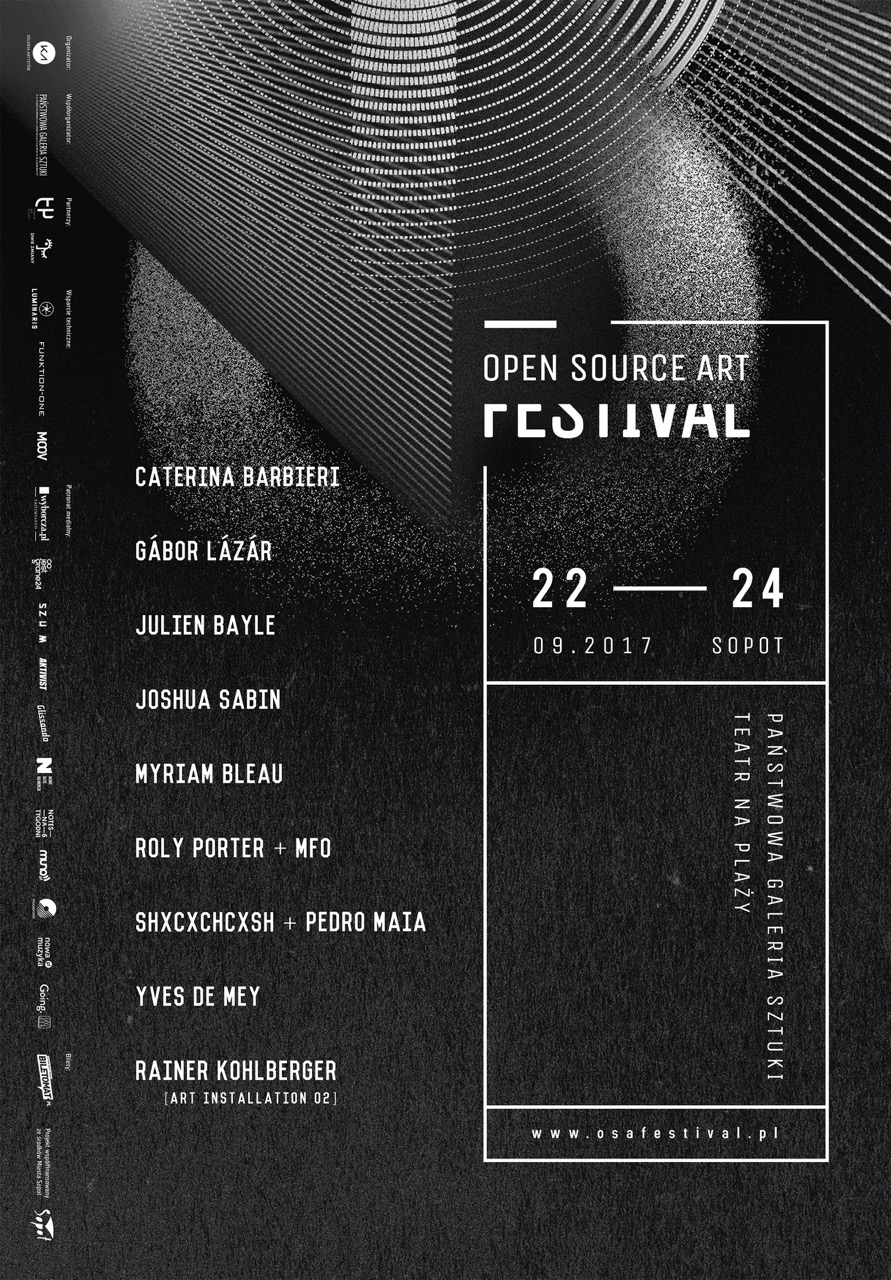 Open Source Art Festival 2017 to międzynarodowy, trzydniowy festiwal muzyki elektronicznej i eksperymentalnej. Dzięki występom międzynarodowych artystów, OSA Festival po 6 edycjach stał się rozpoznawalny na mapie najważniejszych wydarzeń w Europie i przyciąga co roku coraz większe grono miłośników muzyki eksperymentalnej i znawców sztuki współczesnej oraz ruchomego obrazu z całej Europy. Motywem przewodnim VII edycji festiwalu będzie Światło i Ciemność. Jest to kontynuacja zagadnienia poruszonego w roku 2016. Muzycy zaprezentują pokazy audiowizualne oparte na połączeniu dźwięku ze światłem i ciemnością.