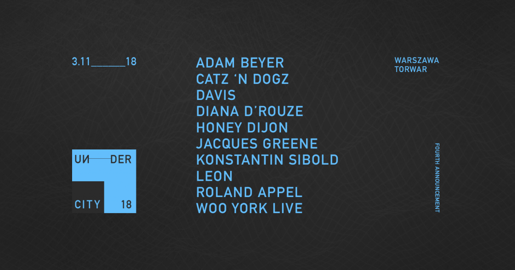 W pierwszą sobotę listopada przestrzenią Torwaru zawładnie Undercity Festival, na którego trzech scenach zagra ponad 20 artystów – od mechanicznego techno Adama Beyera, przez deephouse’owe wycieczki Honey Dijon, microhouse’owego Recondite’a, aż po futuregarage’ową, brytyjsko zakorzenioną wizję Jacques’a Greene’a. Mamy przeczucie, że warto zapamiętać tę nazwę!