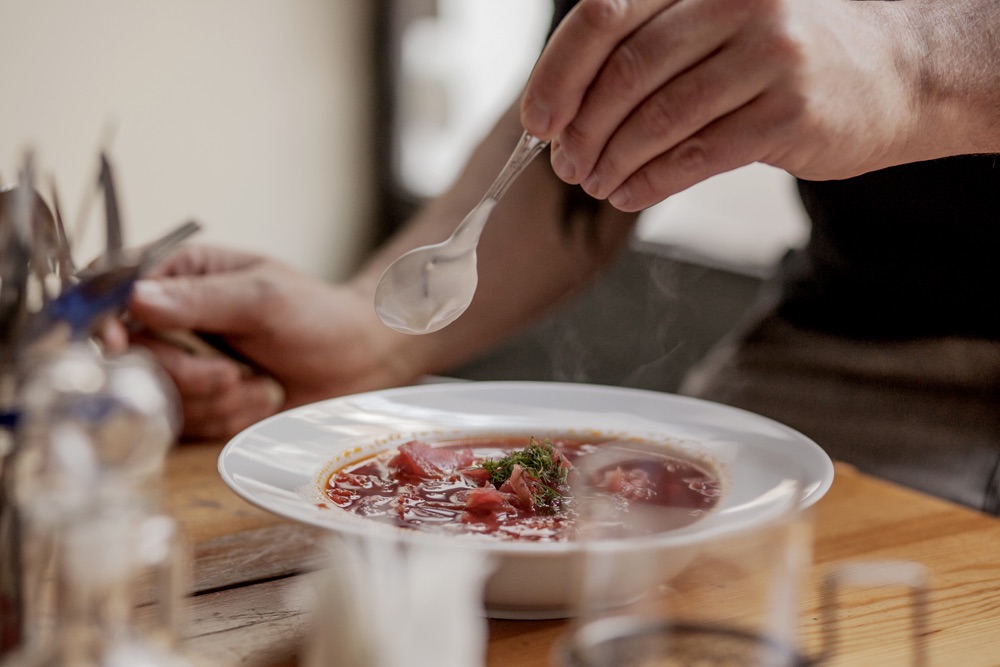 Tak, owszem, należę do osób, które często chodzą do restauracji. Lubię, kiedy ktoś poleca dobre miejsce, ale fotografowanie jedzenia to nie jest moja zajawka. Chodzę do restauracji głównie po to, żeby jeść. Mam kilka ulubionych. Skamiejka, rodzinna rosyjska restauracja, w której siedzimy, to jedna z nich. Bardzo lubię ten ich domowy klimat, bez nadęcia. Karta jest krótka, jedzenie pyszne. Uwielbiam miejsca, gdzie można poczuć się jak u mamy. Bardzo brakuje mi tego typu restauracji w Warszawie. Właścicielka z synem zawsze dbają o serwis z najwyższej półki, a czasami i poczęstują jakimś specjałem spod lady.