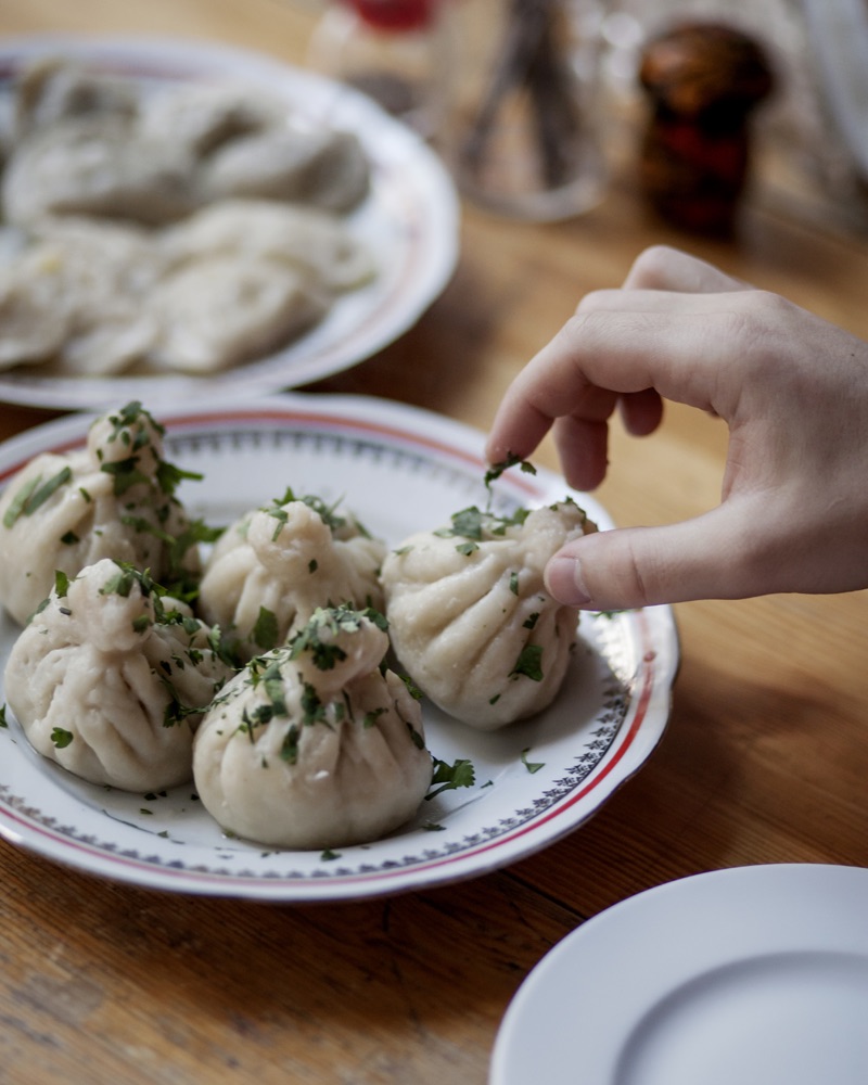 W tym momencie na stół wjeżdżają chaczapuri, gruzińskie sakiewki z mięsnym farszem, jedyna chyba nierosyjska rzecz w karcie Skamiejki. Kuba z pietyzmem prezentuje, jak spożywać te gigantyczne pierogi wielkości pięści. The Dumplings Secret knowledge.