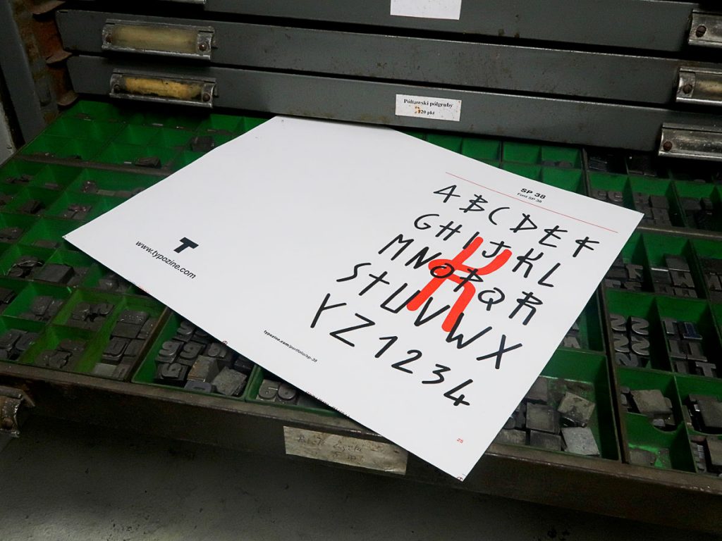 Tutaj zaczyna się nasza znajomość z SP38, podczas pierwszej wizyty w Berlinie od razu rzuciły się nam jego typograficzne plakaty. Które swym oszczędnym i zaangażowanym językiem odcinały się od całej magmy innych wrzutów, którymi dokumentnie był pokryty berliński strit. Do tego autorskie liternictwo. Za litery K, R, E, F jesteśmy dać się pociąć. Zachwyt nie mógł pozostać bez echa. Zapraszamy SP38 do projektu TYPOZINE, który celebrował po prostu piękno liter. Tenże projekt mieliśmy przyjemność pokazać paryskiej publiczności w galerii Frichez-nous la Paix, którą SP38 prowadził w Paryżu. Teraz mamy trzeci akt wspólnej fascynacji, wystawa w Kwiaciarni Grafiki.