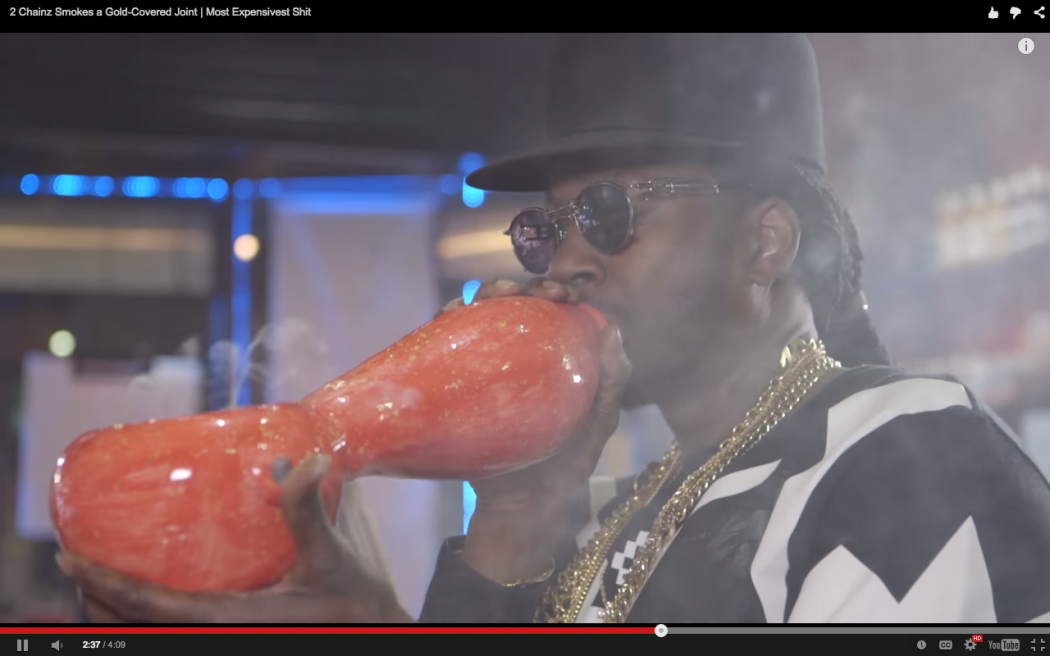 Od jakiegoś czasu 2Chainz jest konsultantem GQ jeśli chodzi o różne najdroższe rzeczy na świecie. Mył już zęby szczoteczką za 5 tysięcy dolarów, słuchał muzyki na słuchawkach za 30 a teraz postanowił zapalić najdroższego jointa na świecie. Który oprócz tego, że składał się z marihuany wartej 800 dolarów za uncję był też skręcony bletką opruszoną 24 karatowym złotem. Sprawdźcie czy różnica cenowa w oczach Chainza była usprawiedliwiona.